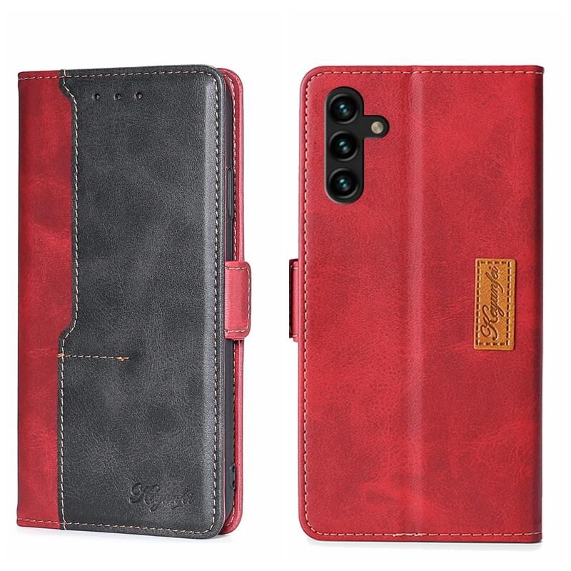 Για Samsung Galaxy A13 4G αντίθεση χρώμα πλευρά πόρπη δερμάτινη θήκη τηλεφώνου (κόκκινο + μαύρο)