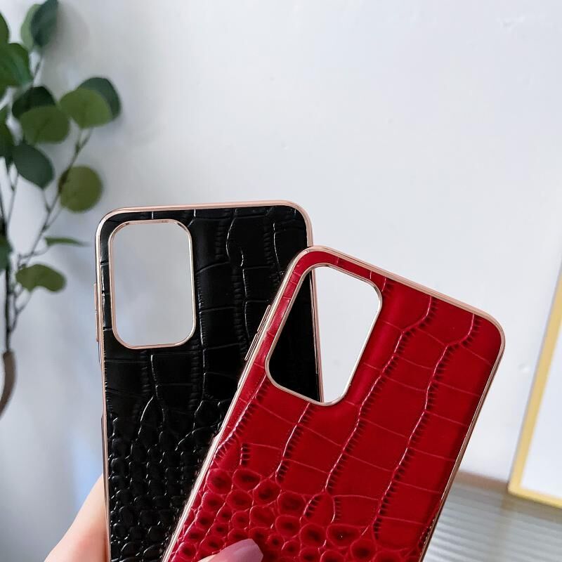 Θήκη τηλεφώνου Samsung Galaxy A13 4G με γνήσιο δέρμα, υφή κροκόδειλου και νανο-επίχρυση (Καφέ)