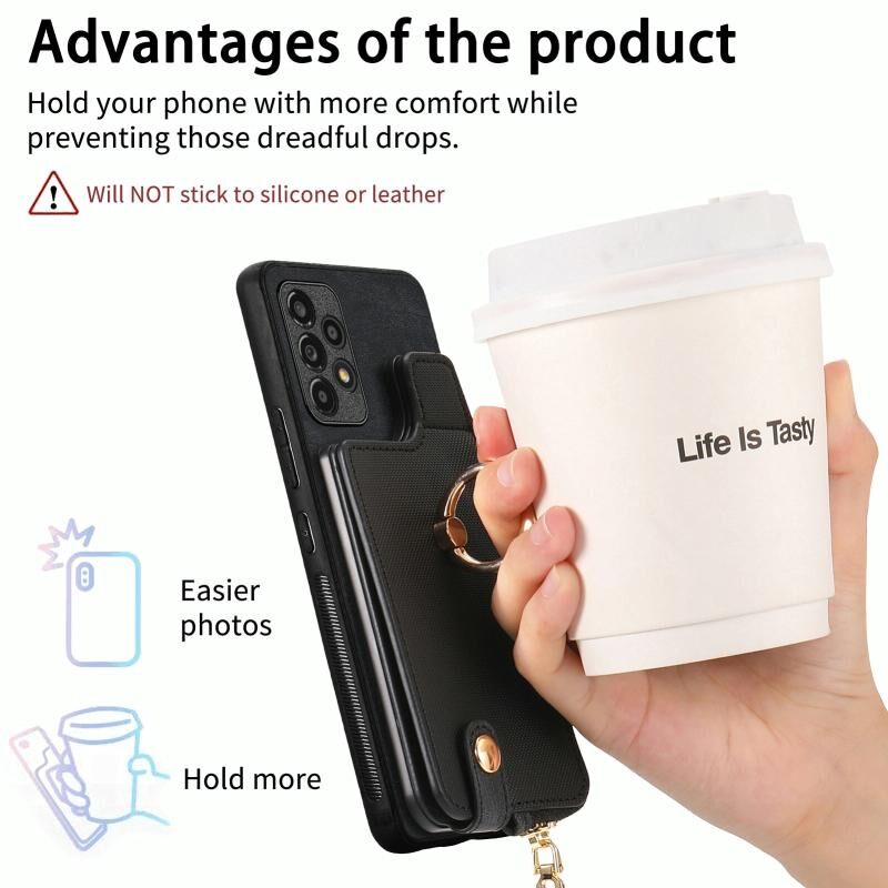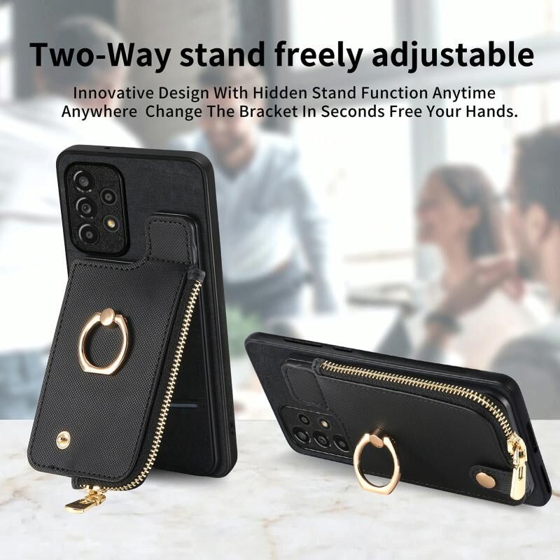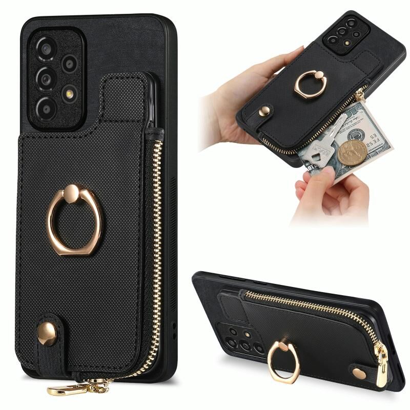 Για Samsung Galaxy A13 4G Cross Δερμάτινο δαχτυλίδι κάθετη φερμουάρ πορτοφόλι πίσω θήκη τηλεφώνου (μαύρο)
