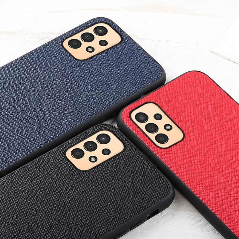 Θήκη τηλεφώνου από γνήσιο δέρμα με ανάγλυφη υφή για Samsung Galaxy A13 4G (Μαύρο)