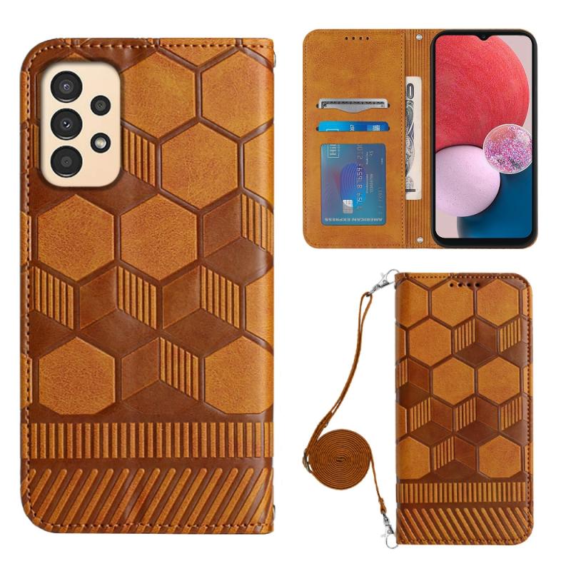 Θήκη κινητού τηλεφώνου Samsung Galaxy A13 4G, διαγώνια, με υφή ποδοσφαίρου, μαγνητική, από PU δέρμα (Χακί)