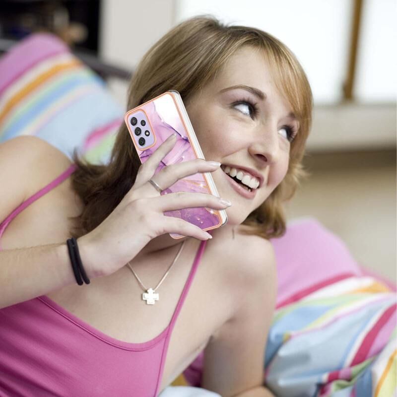 Θήκη κινητού τηλεφώνου Samsung Galaxy A13 4G με επιμετάλλωση, σχέδιο μαρμάρου, διπλής όψης IMD TPU (Μωβ 001)
