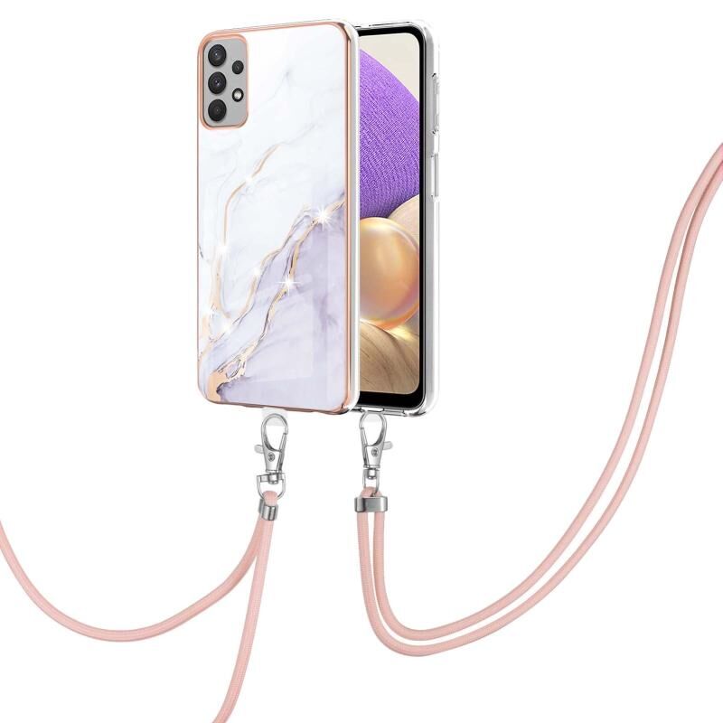 Θήκη κινητού τηλεφώνου TPU με σχέδιο μαρμάρου και ηλεκτρολυτική επικάλυψη για Samsung Galaxy A13 4G με κορδόνι (Λευκό 006)