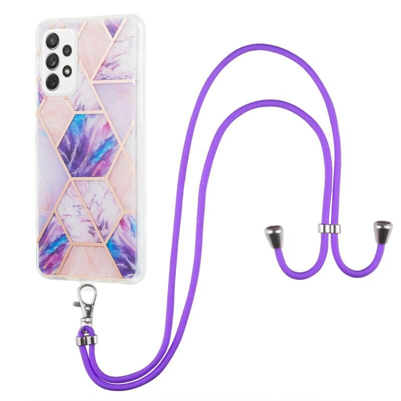 Θήκη τηλεφώνου TPU με γαλβανισμό και μαρμάρινη σύνθεση για Samsung Galaxy A13 4G με κορδόνι (Σκούρο Μωβ)
