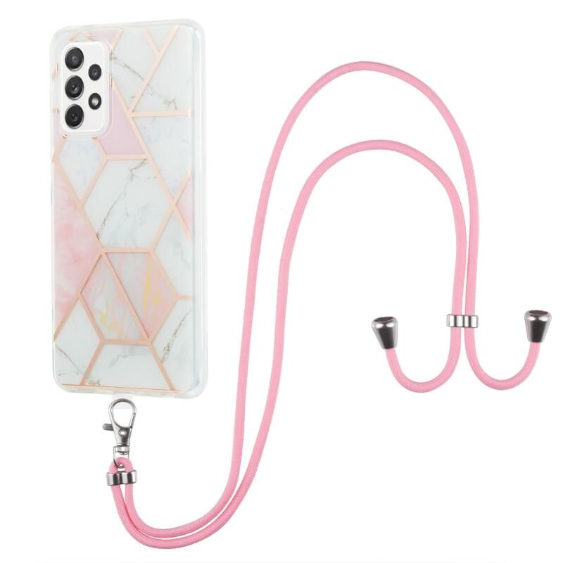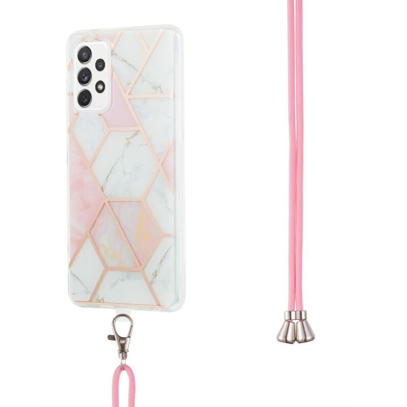 Θήκη τηλεφώνου TPU με γαλβανισμό και μαρμάρινη σύνθεση για Samsung Galaxy A13 4G με κορδόνι (Σκούρο Μωβ)