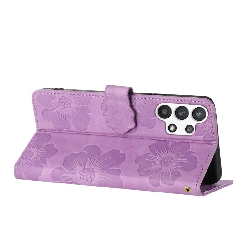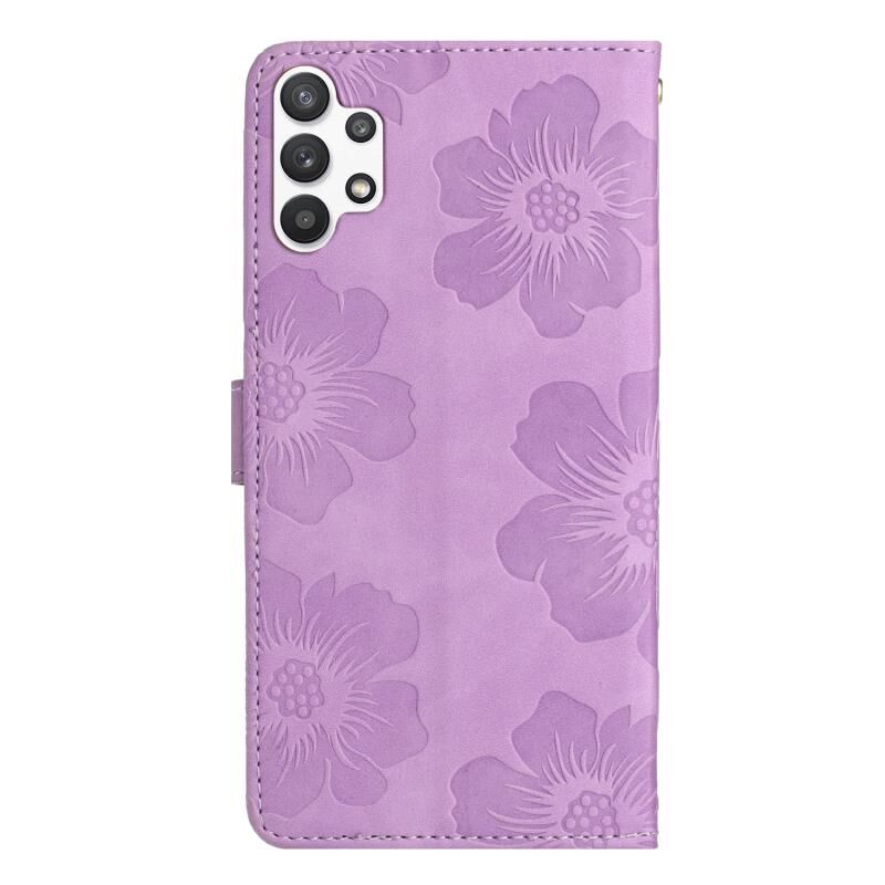 Για Samsung Galaxy A13 4G λουλούδι ανάγλυφο μοτίβο δερμάτινη θήκη τηλεφώνου (μωβ)