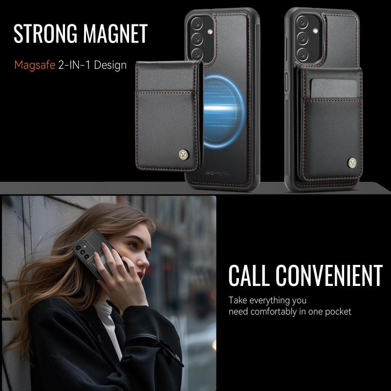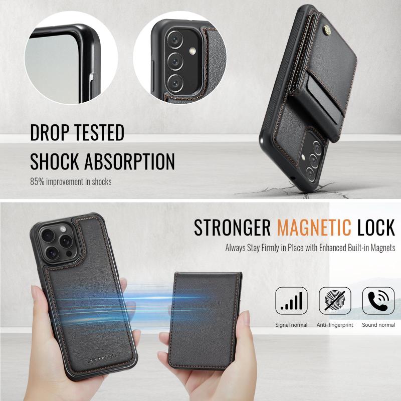 For Samsung Galaxy A13 4G JEEHOOD J06 British Style RFID MagSafe Card Bag PU Phone Case(Black) (JEEHOOD)