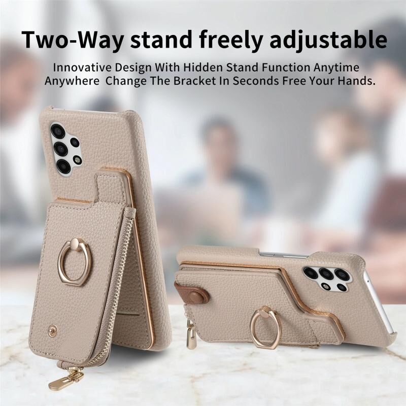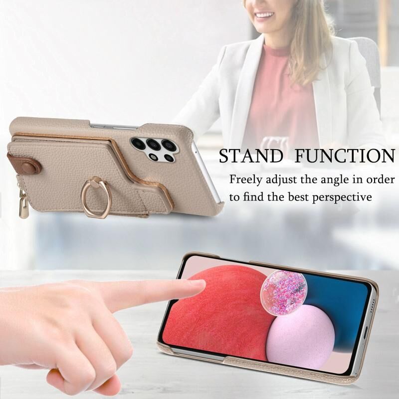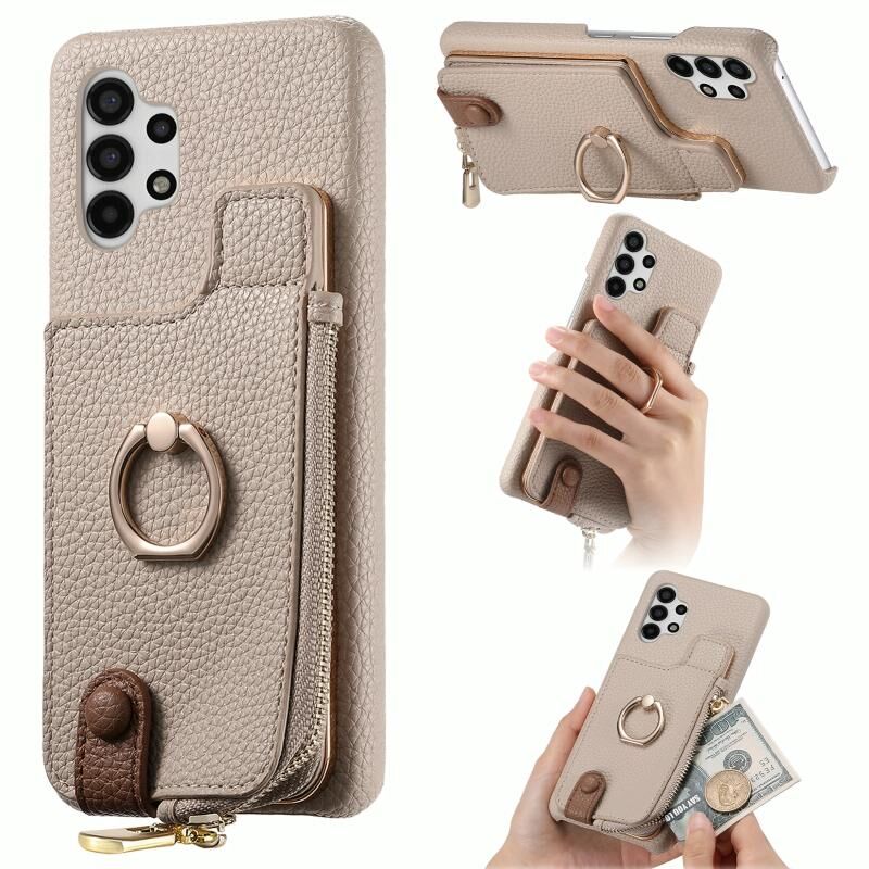 Για Samsung Galaxy A13 4G Litchi δέρμα λάδι άκρη δαχτυλίδι φερμουάρ πορτοφόλι πίσω θήκη τηλεφώνου (λευκό)