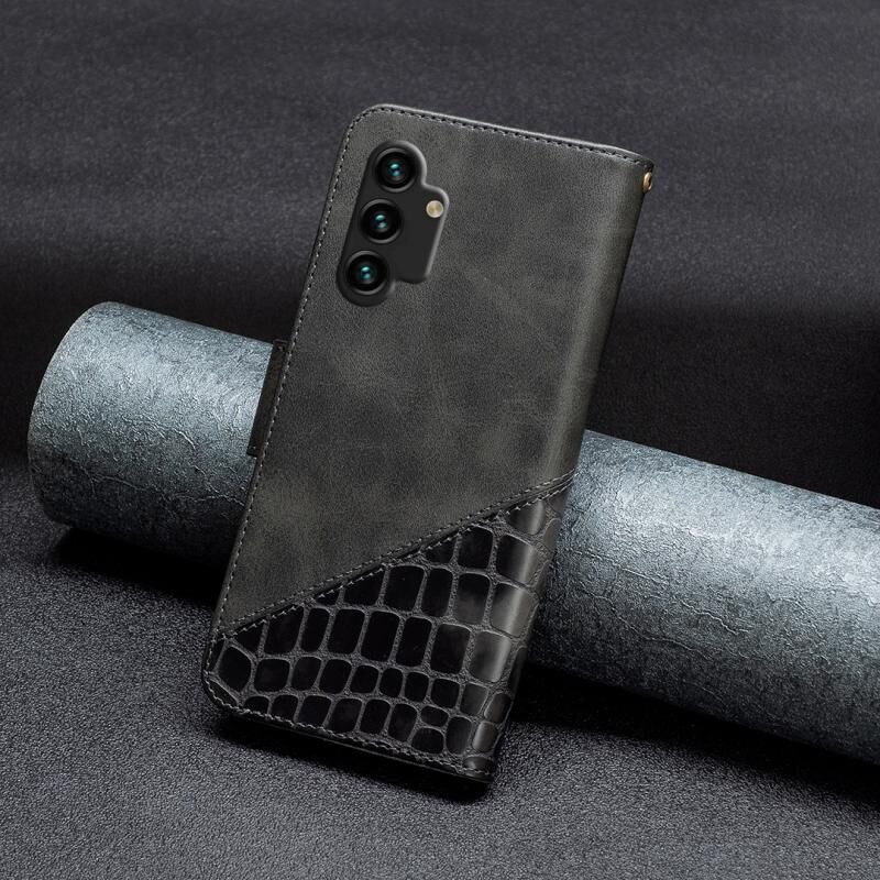 Για Samsung Galaxy A13 4G ταιριάζουν χρώμα κροκόδειλο υφή PU δέρμα τηλέφωνο υπόθεση (μαύρο)