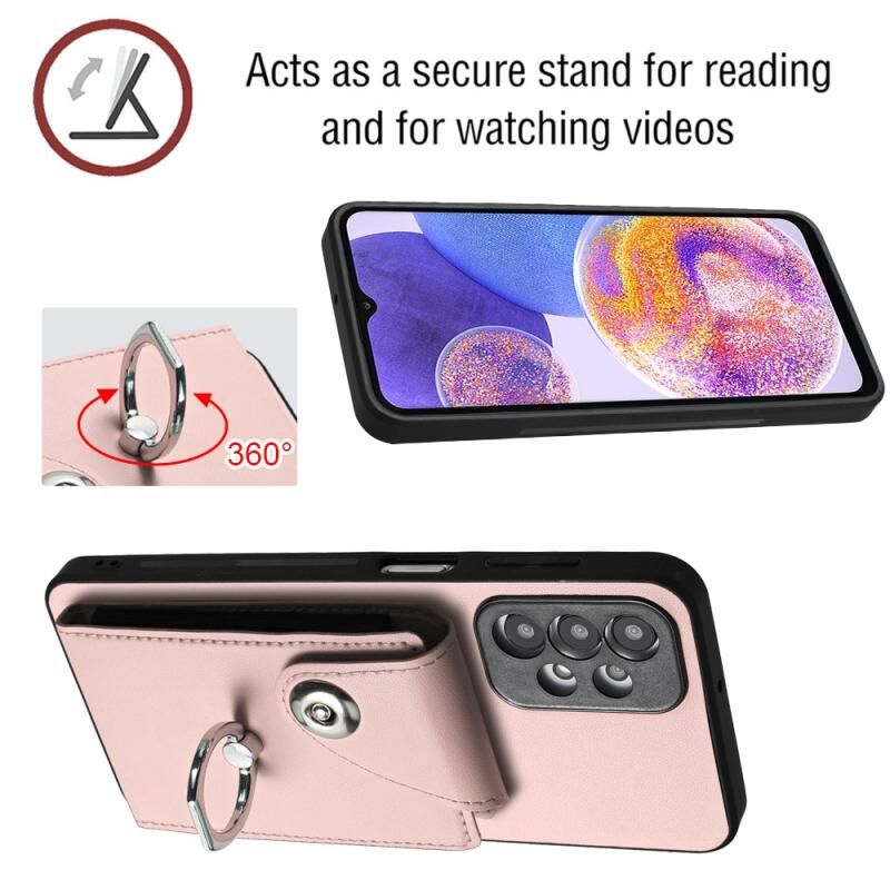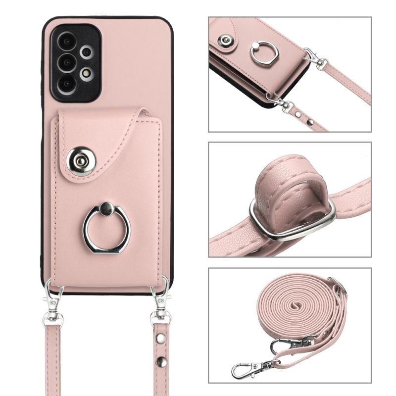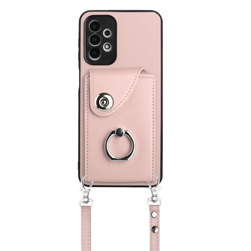 Για Samsung Galaxy A13 4G Οργανική κάρτα τσάντα τσάντα δαχτυλίδι κάτοχος θήκη τηλεφώνου με μακρύ κορδόνι (ροζ)