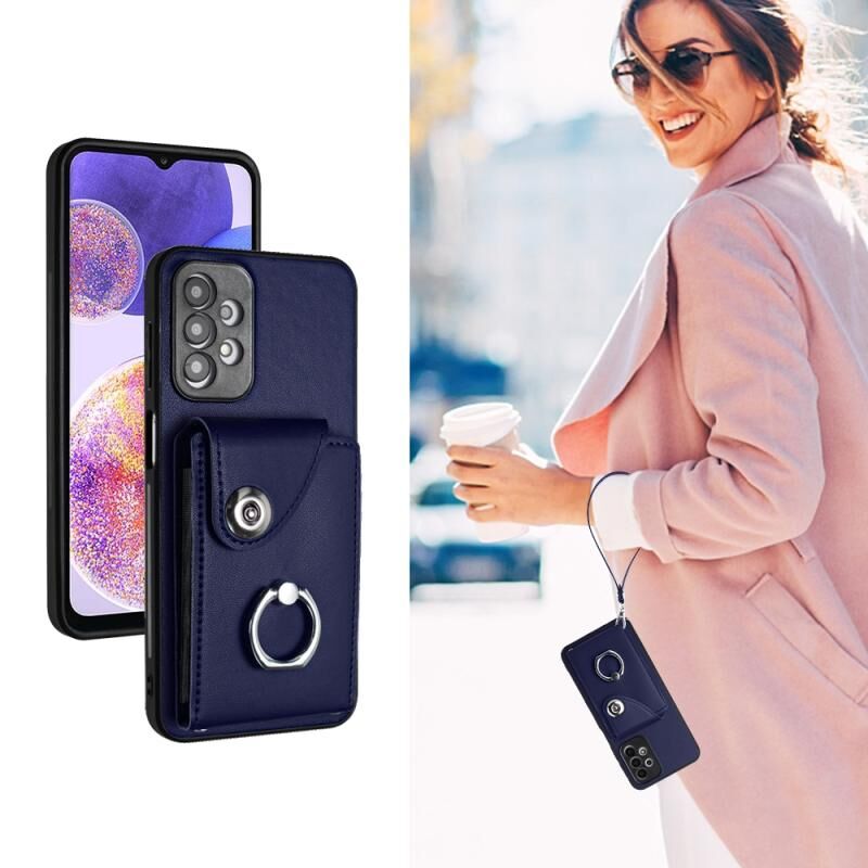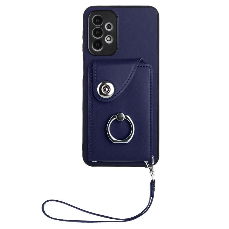 Για Samsung Galaxy A13 4G Οργάνου τσάντα κάρτα δαχτυλίδι τσάντα κάτοχος PU υπόθεση τηλεφώνου με κορδόνι (μπλε)