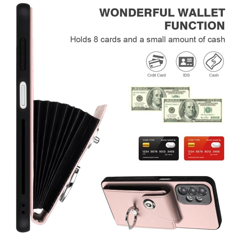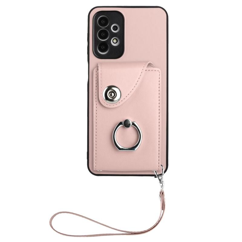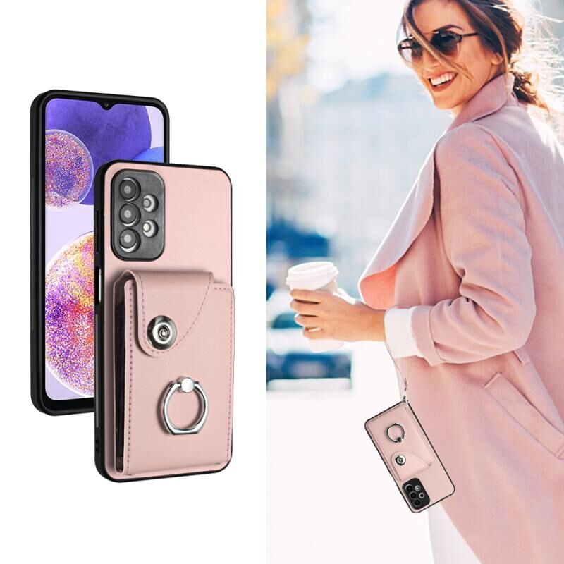 Για Samsung Galaxy A13 4G Οργάνου τσάντα κάρτα δαχτυλίδι τσάντα κάτοχος PU υπόθεση τηλεφώνου με κορδόνι (ροζ)