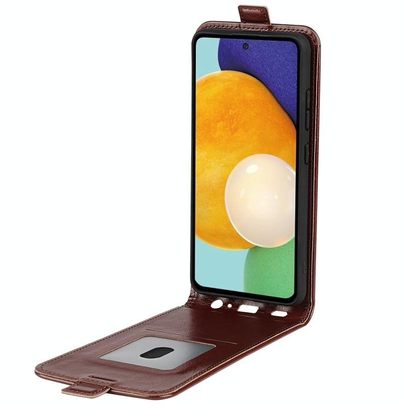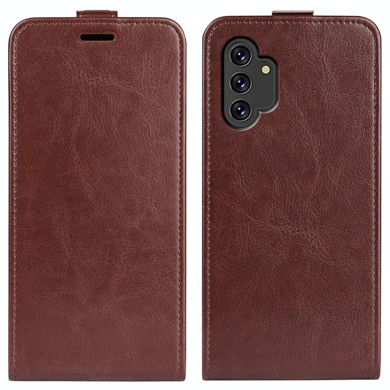 For Samsung Galaxy A13 4G R64 Texture Vertical Flip Leather Case with Card Slots & Photo Frame(Brown)