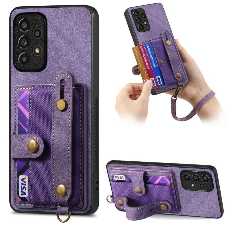 Για Samsung Galaxy A13 4G Ρετρό Σταυρός Wristband πορτοφόλι δέρμα πίσω υπόθεση τηλεφώνου (μωβ)
