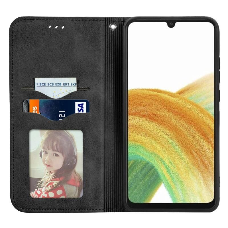 Για Samsung Galaxy A13 4G Retro δέρμα αίσθηση μαγνητική οριζόντια Flip δέρμα τηλέφωνο υπόθεση (μαύρο)