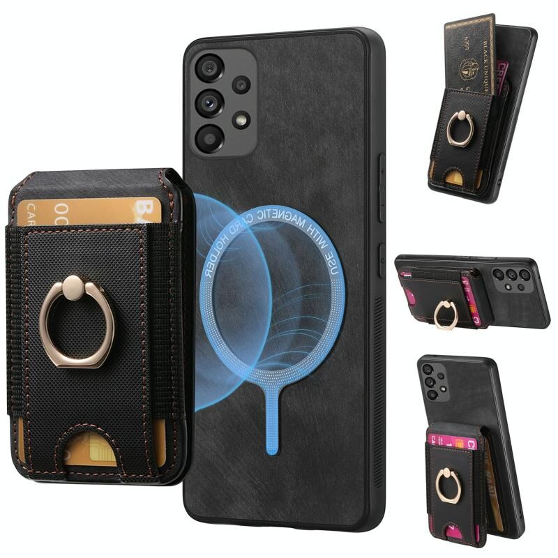 Για Samsung Galaxy A13 4G Ρετρό Splitable μαγνητική στάση κάρτα τσάντα τσάντα δέρμα υπόθεση τηλεφώνου (Μαύρο)