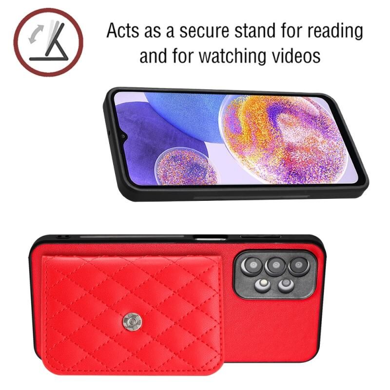 Για Samsung Galaxy A13 4G Rhombic υφή κάρτα τσάντα RFID υπόθεση τηλεφώνου με μακρύ κορδόνι (κόκκινο)