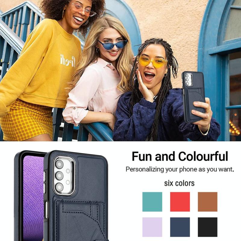 Θήκη κινητού Samsung Galaxy A13 4G ανθεκτική στις κρούσεις από δέρμα με θήκη για κάρτες (Μπλε)