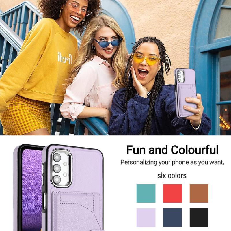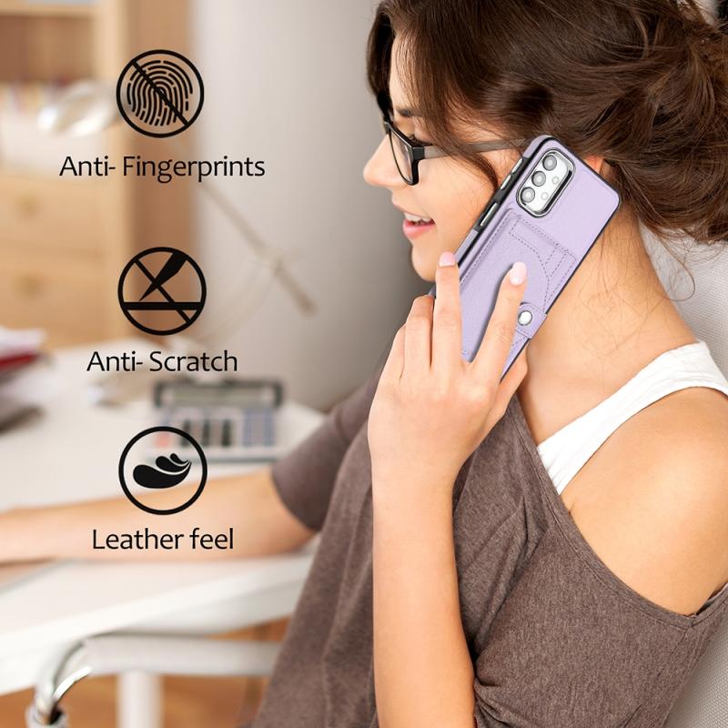 Θήκη κινητού Samsung Galaxy A13 4G ανθεκτική στις κρούσεις από δέρμα με θήκη για κάρτες (Μωβ)