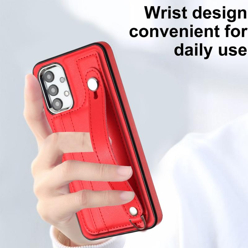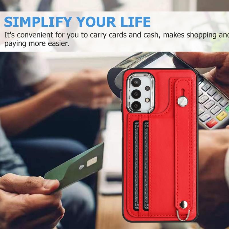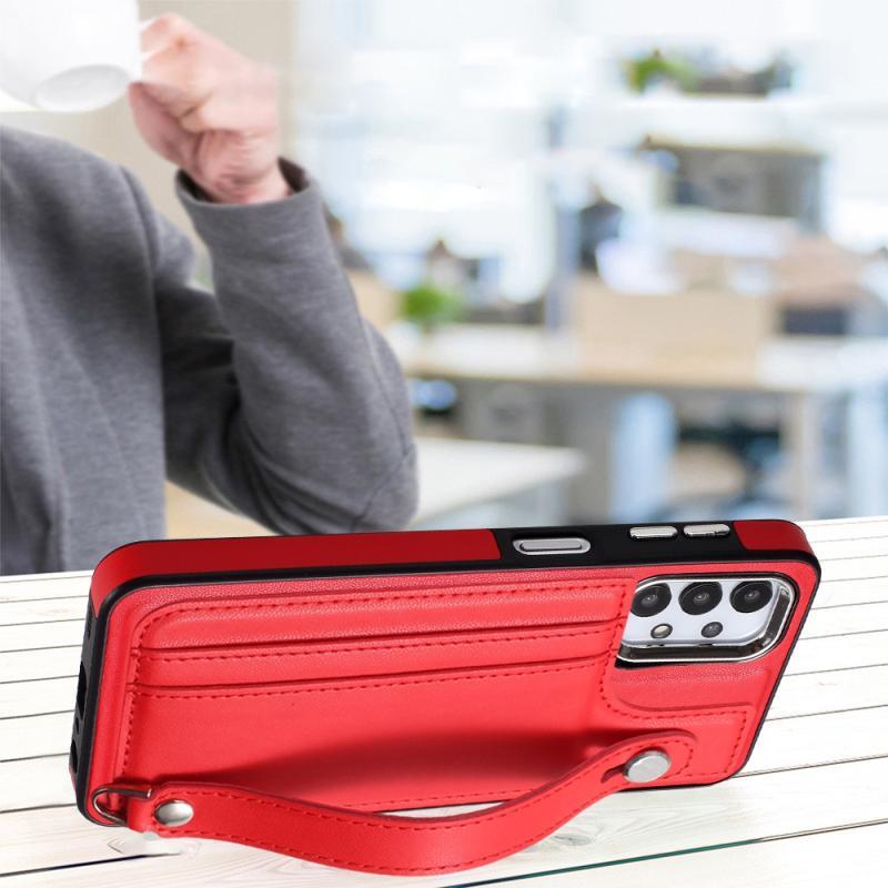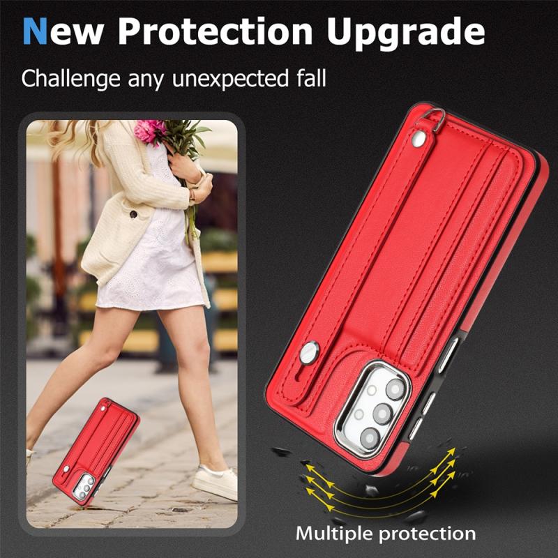 Θήκη κινητού Samsung Galaxy A13 4G ανθεκτική στις κρούσεις από δέρμα με λουρί καρπού (Κόκκινο)