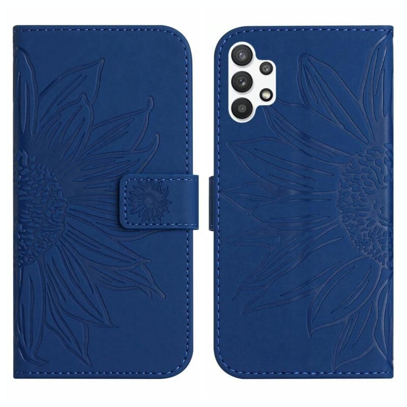 Για το Samsung Galaxy A13 4G δέρμα αίσθηση Sun Flower μοτίβο Flip δέρμα τηλέφωνο υπόθεση με κορδόνι (σκούρο μπλε)
