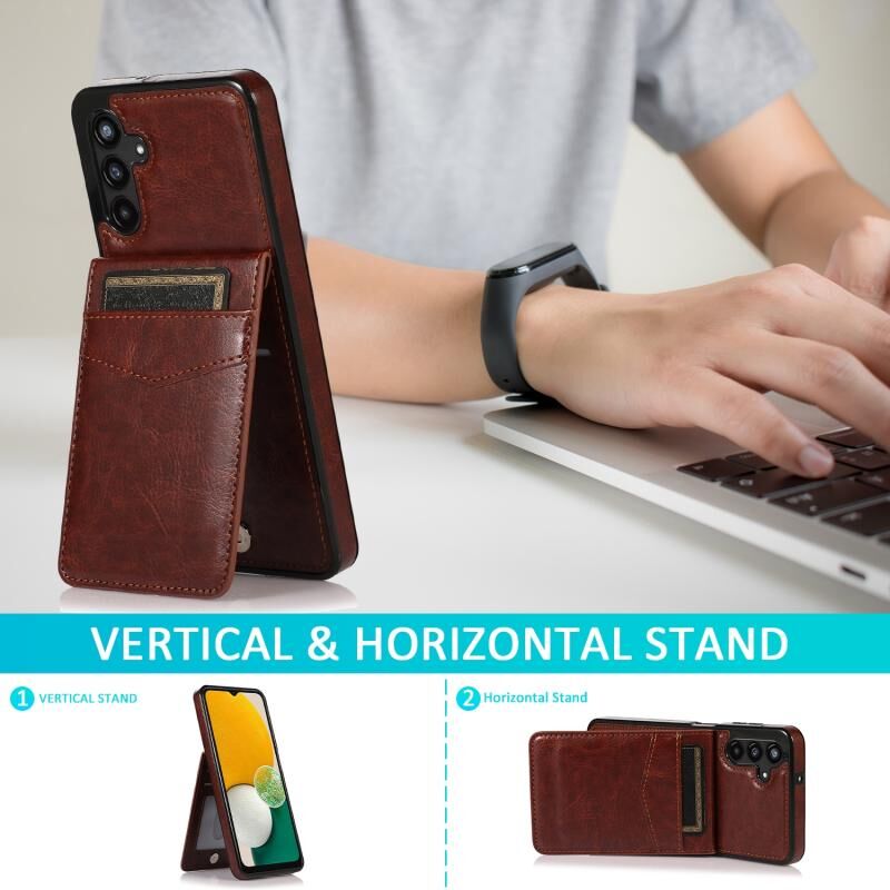Για Samsung Galaxy A13 4G Αμιγές χρώμα PC + TPU προστατευτική θήκη με θήκη & υποδοχές για κάρτες (καφέ)