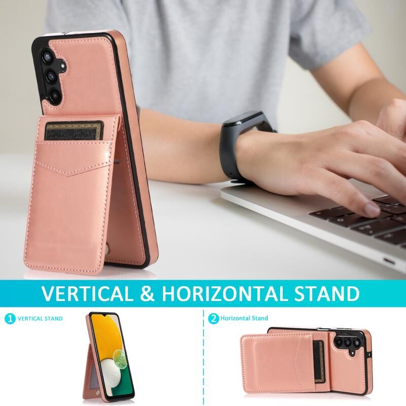 Για Samsung Galaxy A13 4G Αμιγές χρώμα PC + TPU προστατευτική θήκη με θήκη & υποδοχές για κάρτες (ροζ χρυσό)