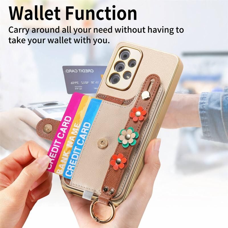 Για Samsung Galaxy A13 4G Στερεοσκοπικά λουλούδια Wristband κάρτα τσάντα υπόθεση τηλεφώνου (χακί)