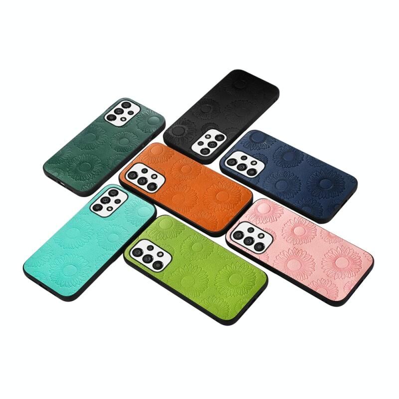 Για το Samsung Galaxy A13 4G ηλιοτρόπιο μοτίβο PU + PU + PC Shockproof τηλέφωνο υπόθεση (ροζ)