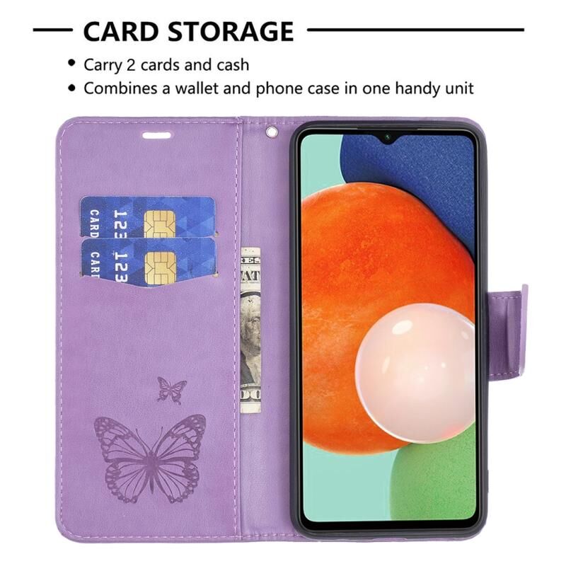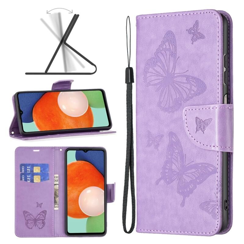 Θήκη τηλεφώνου δερμάτινη με ανάγλυφο σχέδιο πεταλούδων για Samsung Galaxy A13 4G (Μωβ)