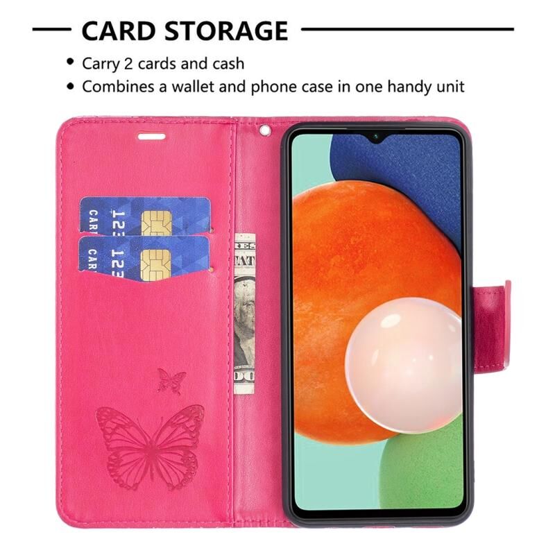 Θήκη τηλεφώνου δερμάτινη με ανάγλυφο σχέδιο πεταλούδων για Samsung Galaxy A13 4G (Ροζέ κόκκινο)