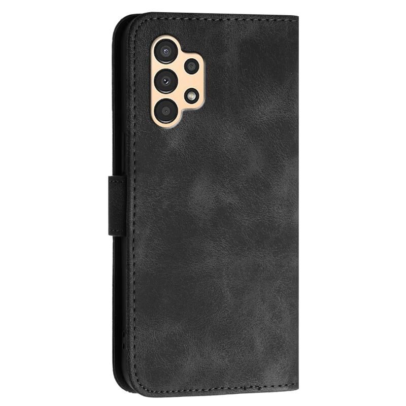 Θήκη τηλεφώνου Samsung Galaxy A13 4G YX0080, δερμάτινη, τύπου flip, με ανάγλυφο σχέδιο πλέγματος και πεταλούδας και λουρί (Μαύρο)