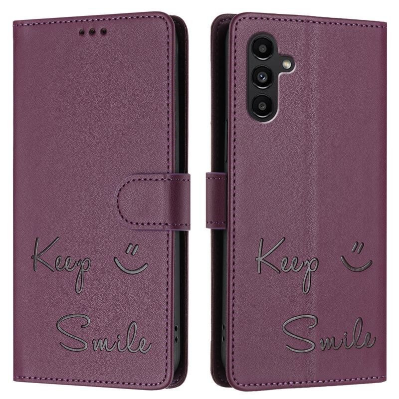 Για Samsung Galaxy A13 5G / 4G / A04s Χαμόγελο ανάγλυφο RFID δερμάτινη θήκη τηλεφώνου (Violet)