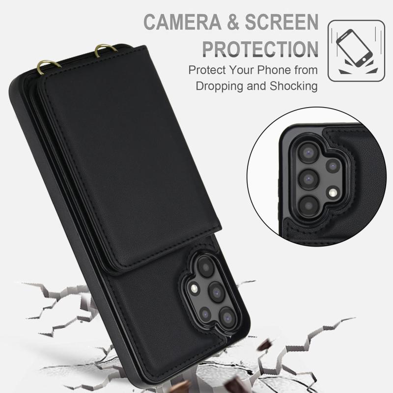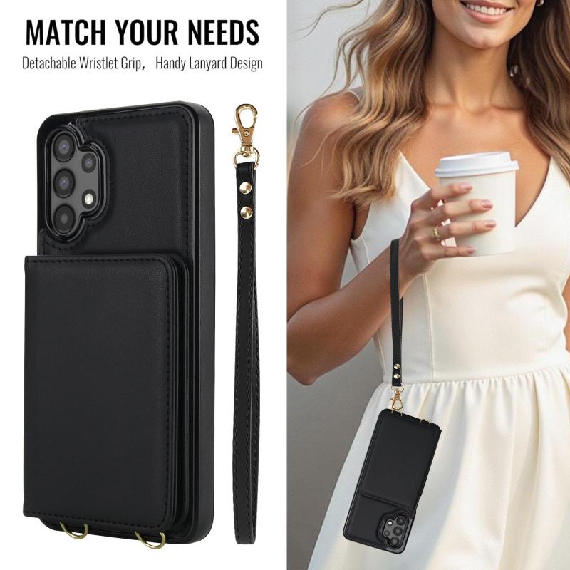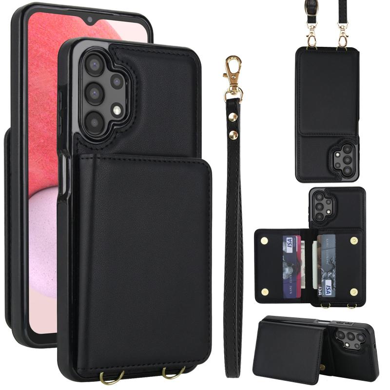 For Samsung Galaxy A13 5G / 4G Crossbody Dual-buckle Wallet RFID Back Leather Phone Case(Black)