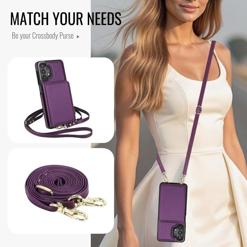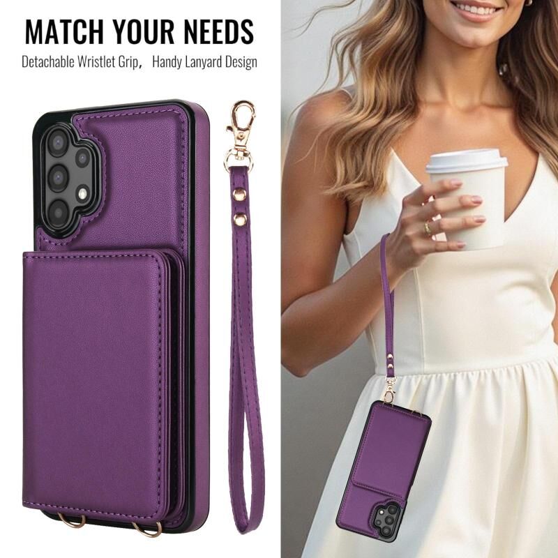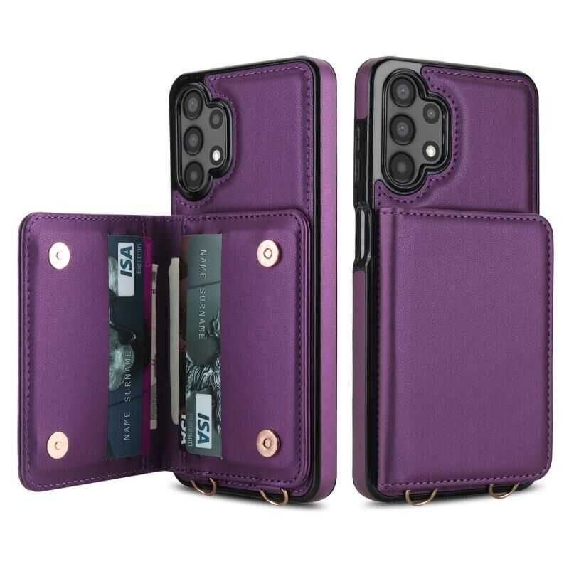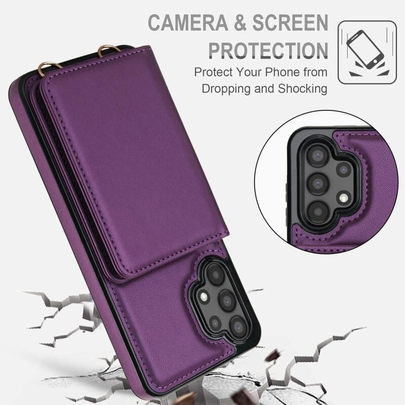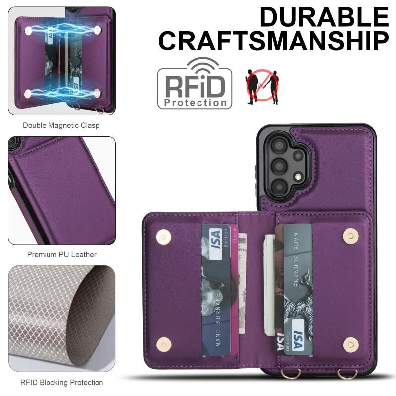 For Samsung Galaxy A13 5G / 4G Crossbody Dual-buckle Wallet RFID Back Leather Phone Case(Dark Purple)