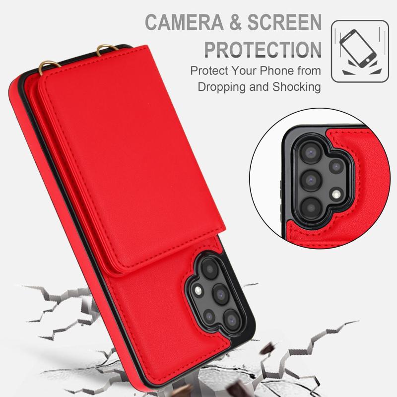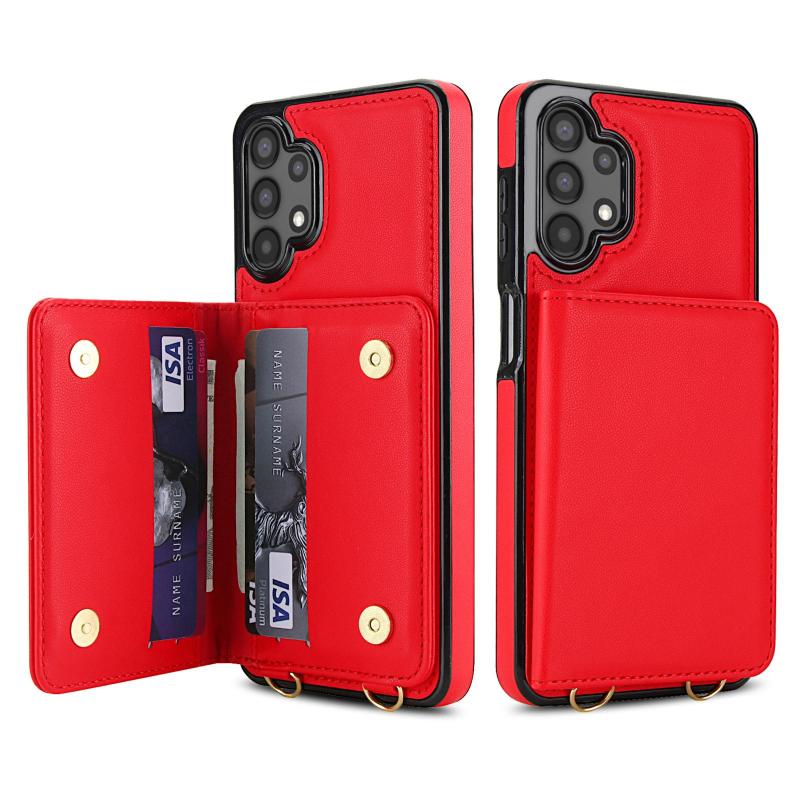 For Samsung Galaxy A13 5G / 4G Crossbody Dual-buckle Wallet RFID Back Leather Phone Case(Red)