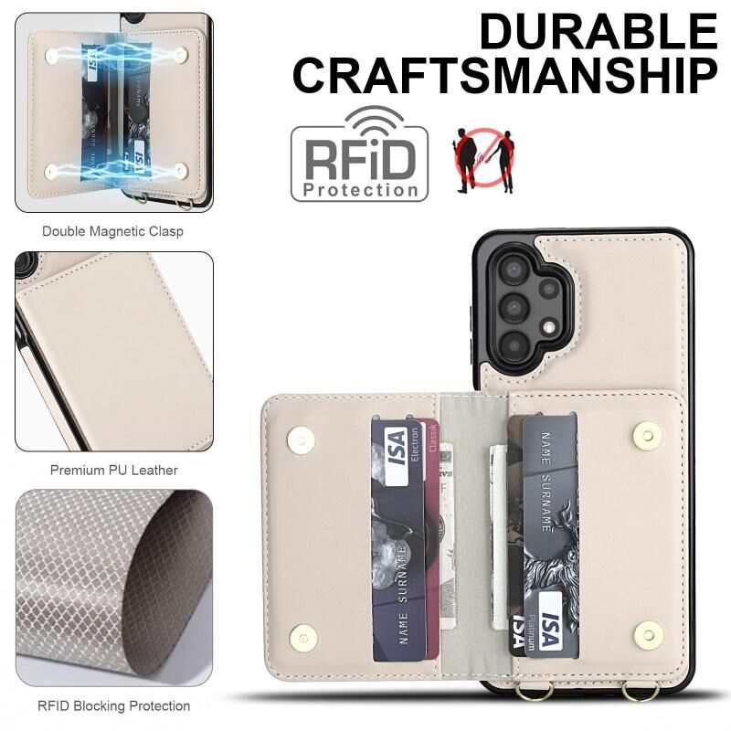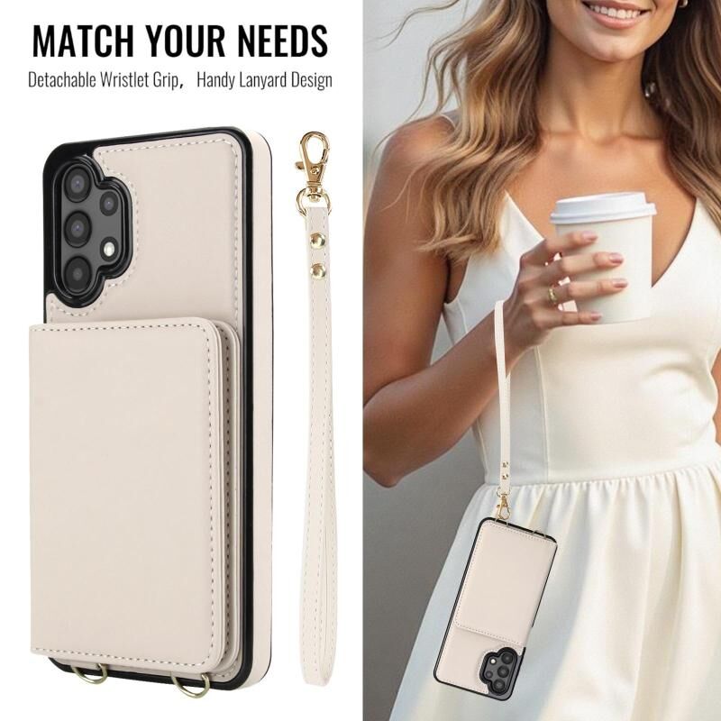 For Samsung Galaxy A13 5G / 4G Crossbody Dual-buckle Wallet RFID Back Leather Phone Case(White)