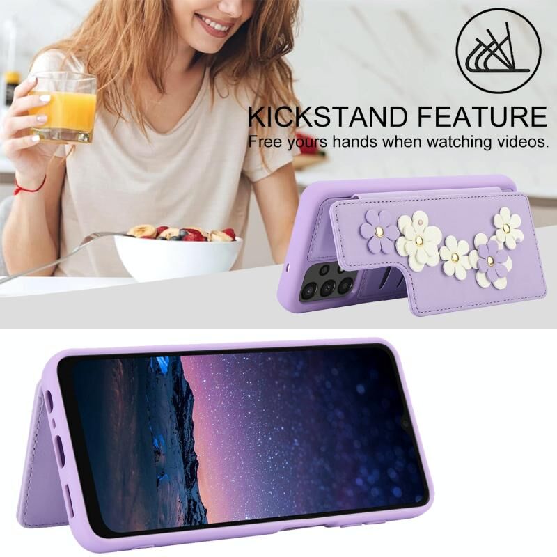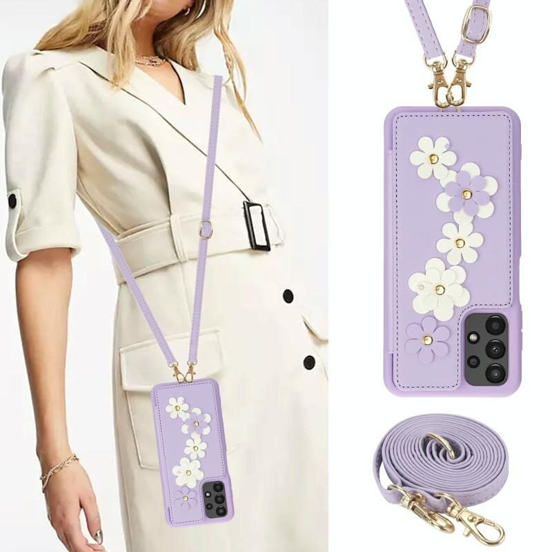 Για Samsung Galaxy A13 5G / 4G Crossbody λουλούδι μοτίβο δερμάτινη θήκη τηλεφώνου (Μωβ)