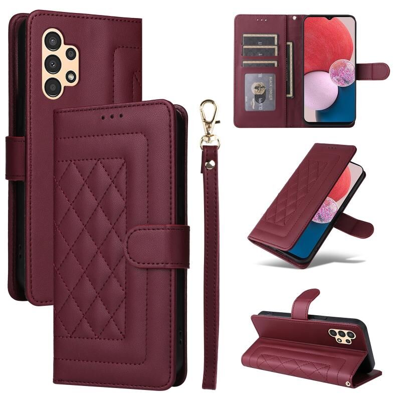 Για Samsung Galaxy A13 5G / 4G Diamond Lattice δέρμα Flip υπόθεση τηλεφώνου (κόκκινο κρασί)
