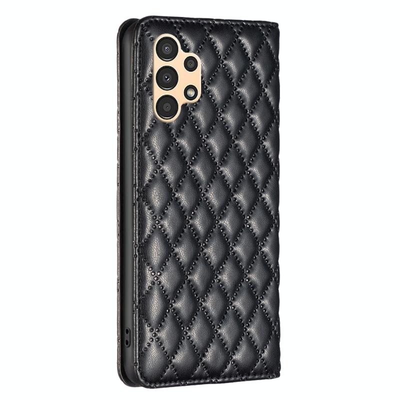 Θήκη τηλεφώνου Samsung Galaxy A13 5G / 4G, Δερμάτινη, Πτυσσόμενη, με Μαγνητικό Κλείσιμο και Σχέδιο Διαμαντόπλεγμα (Μαύρο)