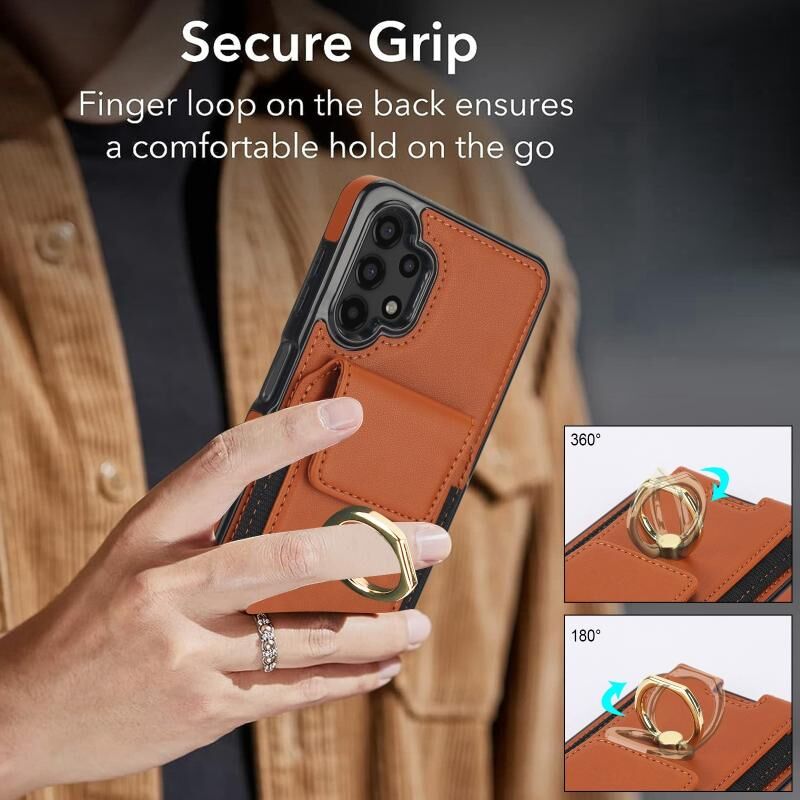 Για Samsung Galaxy A13 5G / 4G Ελαστική τσάντα κάρτας δαχτυλίδι κάτοχος θήκη τηλεφώνου (καφέ)