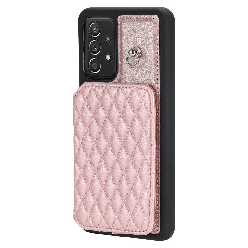 For Samsung Galaxy A13 5G / 4G Grid Texture Card Bag Phone Case with Lanyard(Ροζ χρυσός)