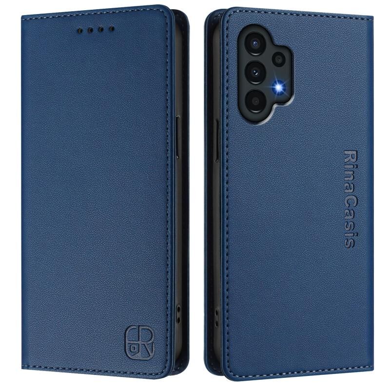 Θήκη τηλεφώνου δερμάτινη με μαγνητική απορρόφηση και διπλή πτύχωση για Samsung Galaxy A13 5G / 4G RC01 (Σκούρο μπλε)