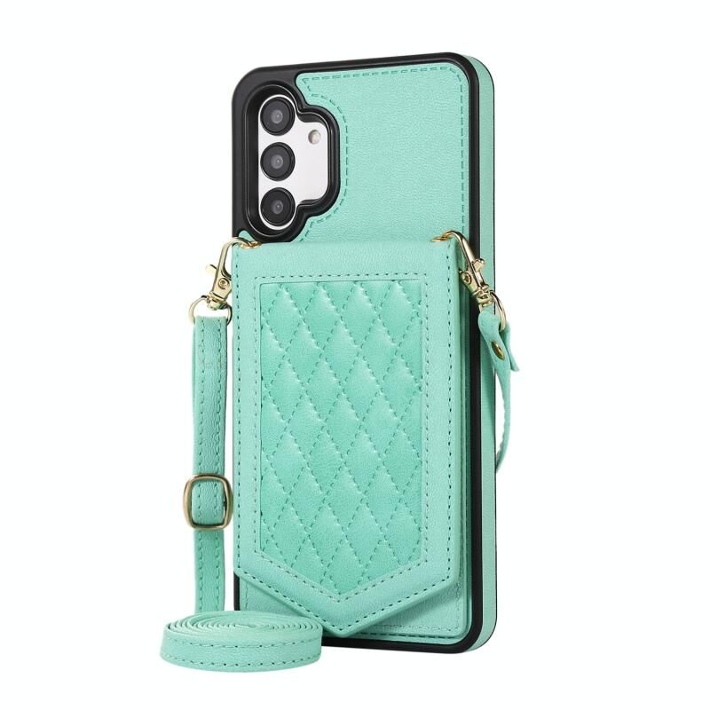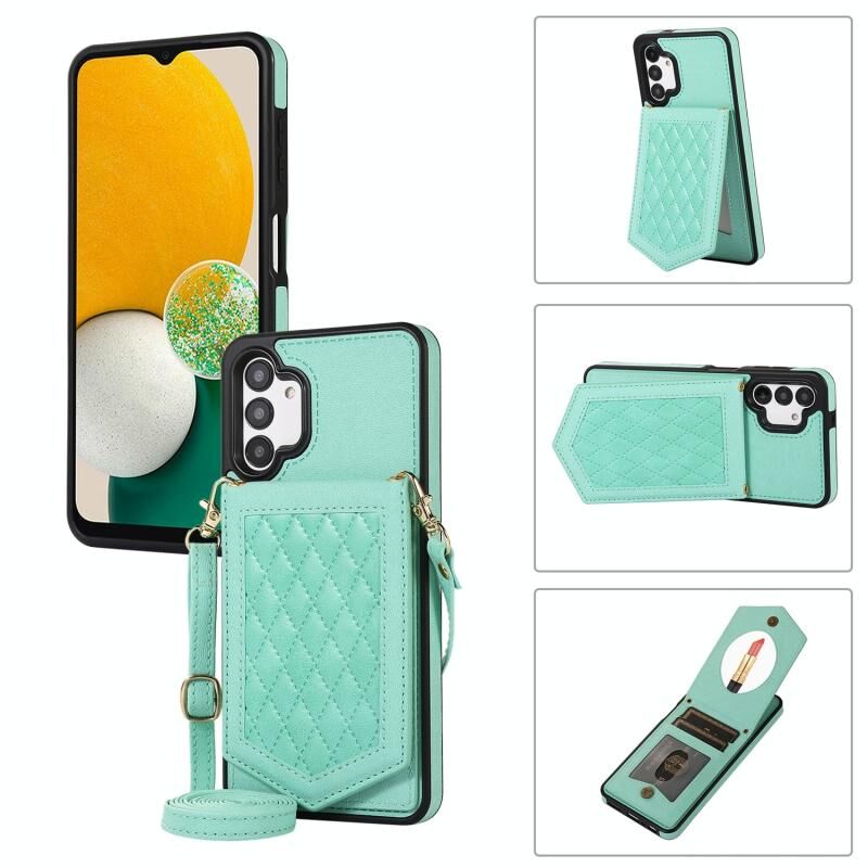 Για Samsung Galaxy A13 5G / 4G Rhombic Υφή RFID υπόθεση τηλεφώνου με κορδόνι & καθρέφτη (πράσινο χρώμα)