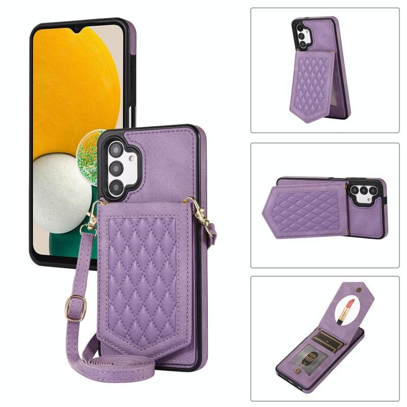 Για Samsung Galaxy A13 5G / 4G Rhombic Υφή RFID υπόθεση τηλεφώνου με κορδόνι & καθρέφτη (μωβ)