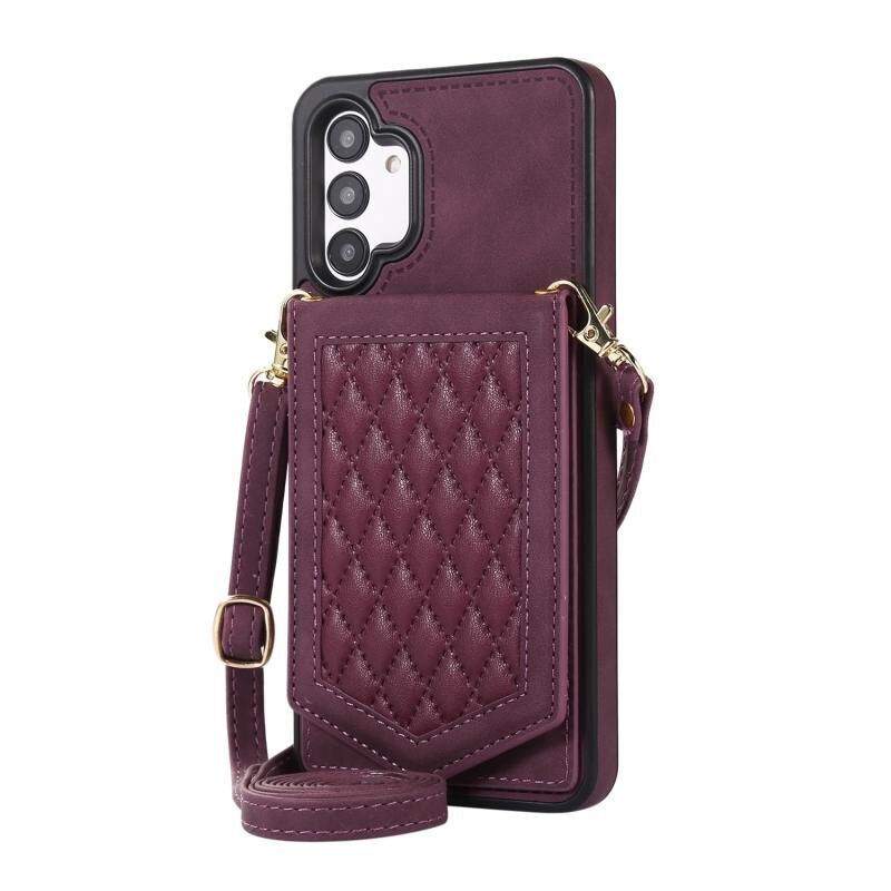 Για Samsung Galaxy A13 5G / 4G Rhombic Texture RFID θήκη τηλεφώνου με κορδόνι & καθρέφτη (κόκκινο κρασί)