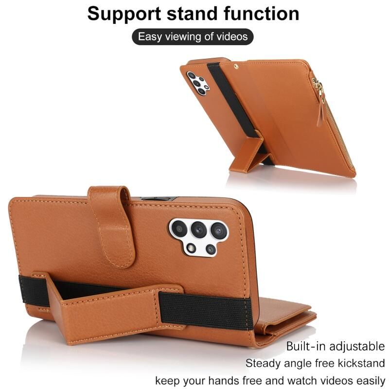 Για Samsung Galaxy A13 5G / 4G Wristband κάτοχος φερμουάρ πορτοφόλι RFID δερμάτινη θήκη τηλεφώνου (Καφέ)