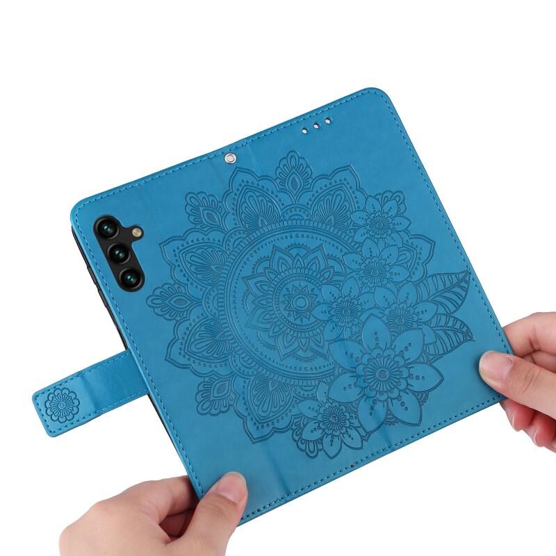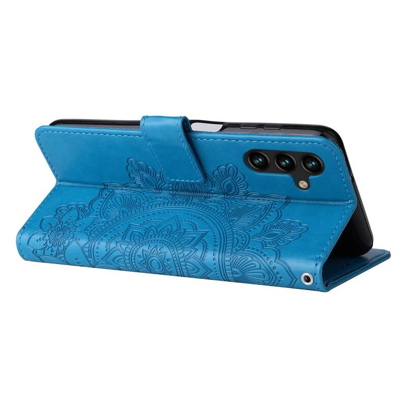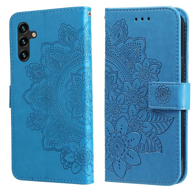 Για Samsung Galaxy A13 5G 7-πέταλο λουλούδια ανάγλυφο οριζόντια Flip δερμάτινη θήκη τηλεφώνου με θήκη & υποδοχές για κάρτες (μπλε)