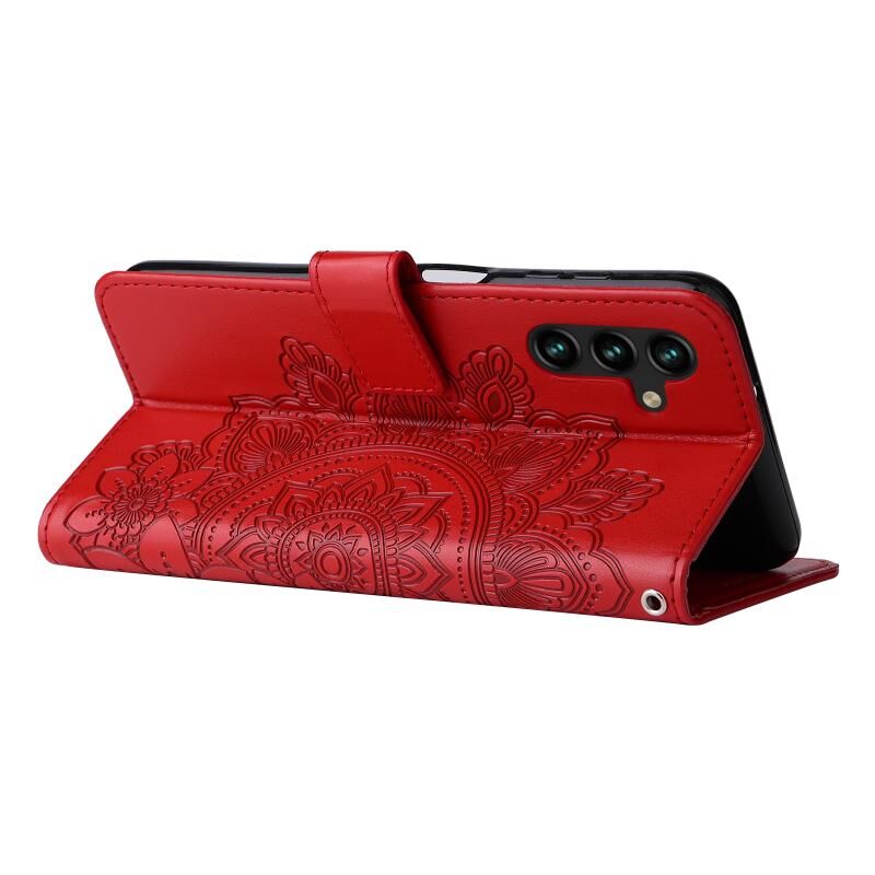 Για Samsung Galaxy A13 5G 7-πέταλο λουλούδια ανάγλυφο οριζόντια Flip δερμάτινη θήκη τηλεφώνου με θήκη & υποδοχές για κάρτες (κόκκινο)