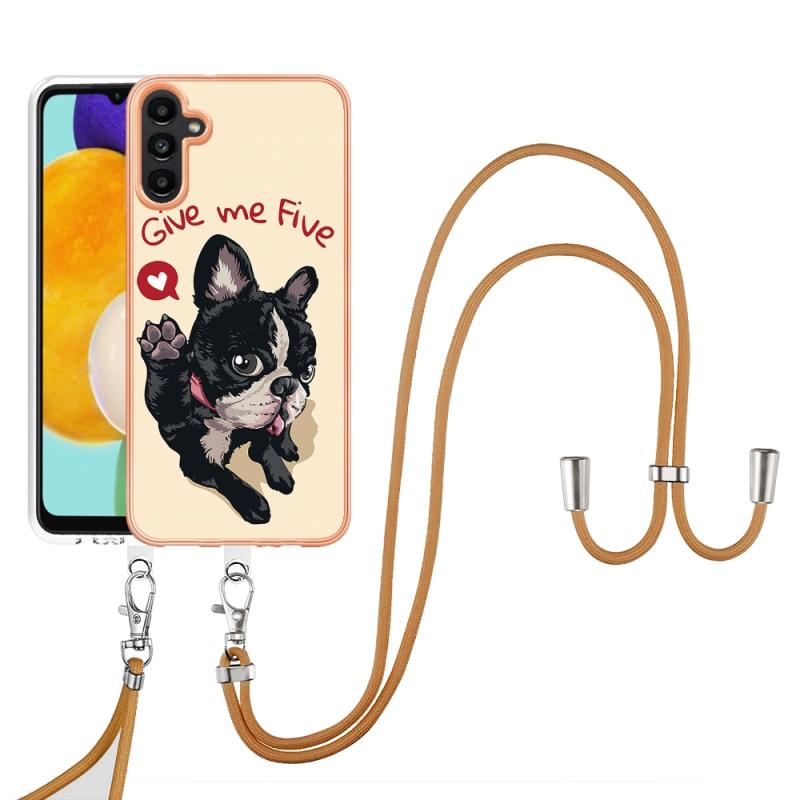 For Samsung Galaxy A13 5G / A04s / M13 5G Electroplating Dual-side IMD Phone Case with Lanyard(Lucky Dog)